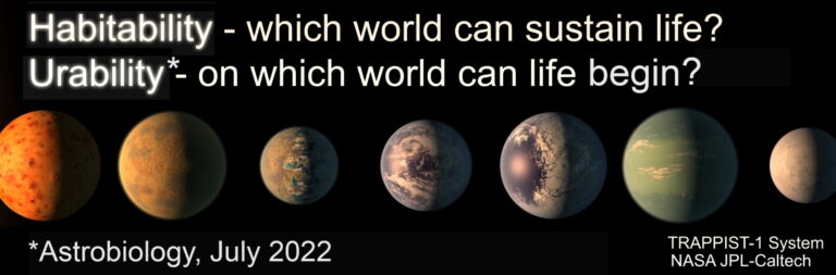What can we conclude from the work so far? First, the results suggest that it is possible for long strands of nucleic acids resembling DNA and RNA to be synthesized by cycles of wetting and drying, conditions that would have been common in volcanic sites on the early Earth and Mars. Second, if life did not invent nucleic acids, how did they become incorporated in the first living cells? The answer is surprisingly simple. The same wet-dry cycles allow membranes to encapsulate nucleic acids if fatty acids are present in the mixture, producing vast numbers of protocells. As this work continues, we plan to develop and test a more complete set of physical and chemical properties which a young planet needs for life to begin. We have proposed a new word – urability – to describe such sets. These properties directly inform the F sub l term in Frank Drake’s equation: the fraction of planets where life emerges and evolves.
